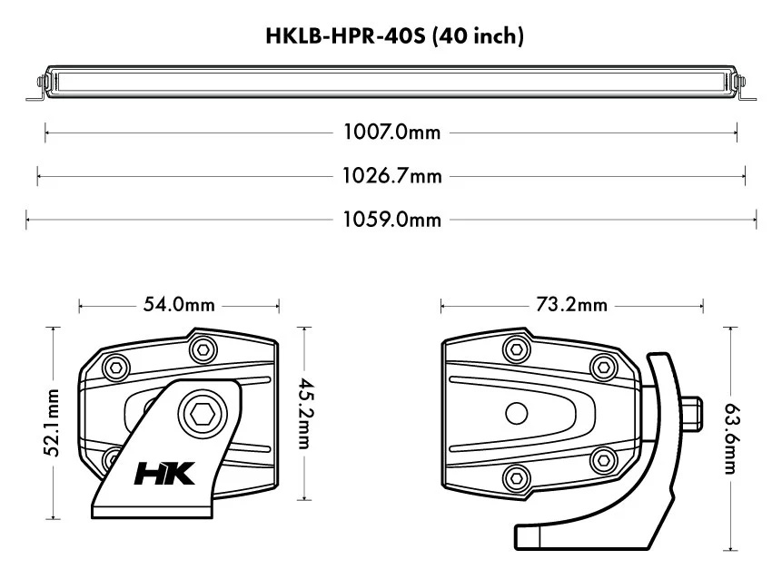 Hardkorr Hyperion 40″ имеет интеллектуальный дизайн. Поскольку однорядные балки часто используются в ограниченном пространстве, например, внутри решёток радиатора и под багажниками на крыше, Hardkorr спроектировал балки Hyperion максимально тонкими, минимизируя неиспользуемое пространство внутри. При использовании торцевых ножек высота балки составляет всего 52,1 мм, а при использовании нижних ножек — всего 63,6 мм.