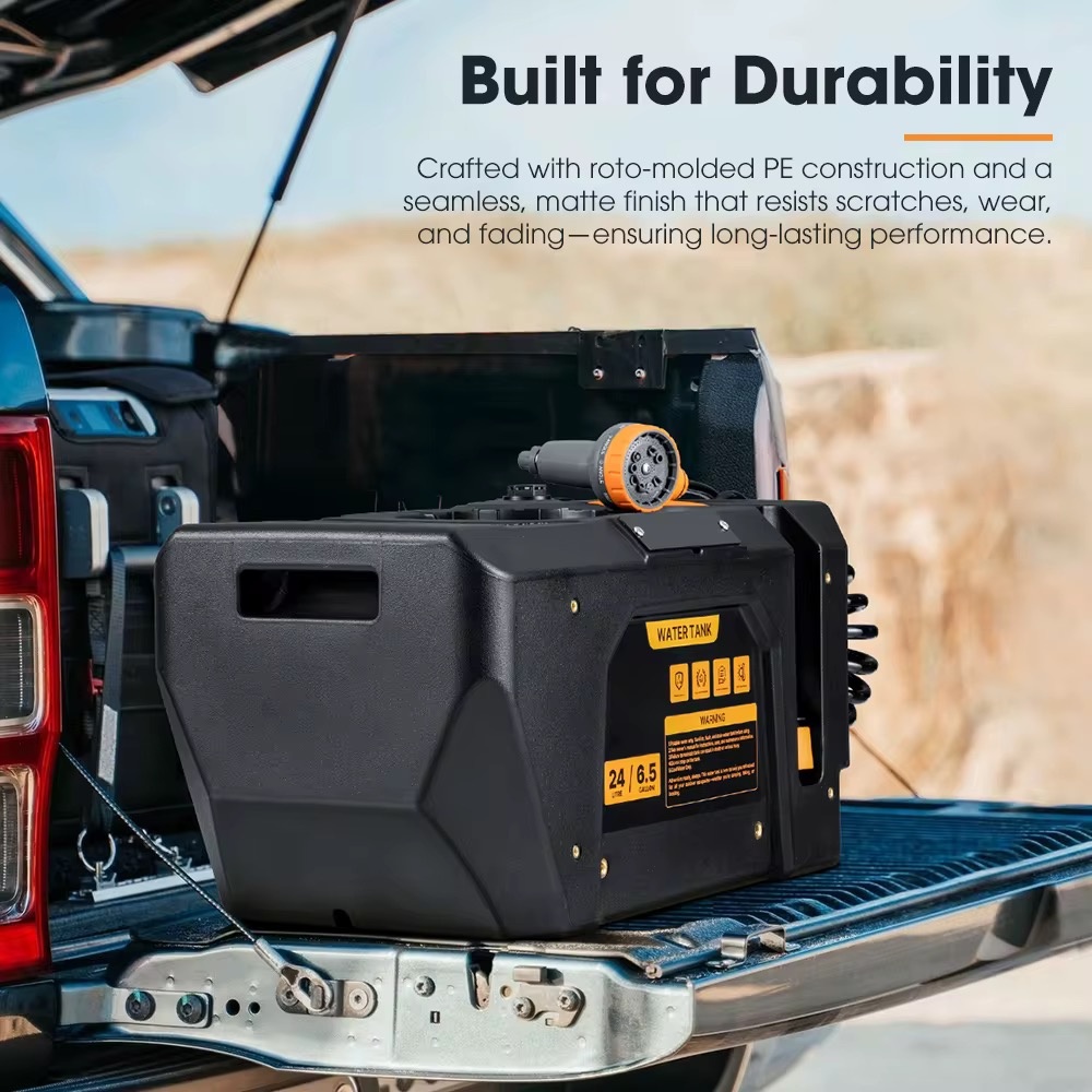 Аккумуляторный душ. Удобно в авто поездках на кемпинге. Устанавливается на багажник крышу или внутри авто. Работает от встроенного аккумулятора, электрическая помпа качает воду. Обьем 24л. Давление помпы 50psi. Канистра изготовлена из высокоплотного полимера — выдерживает самую жестокую эксплуатацию в экстремальных ситуациях. Канистра может быть использованна под воду. Объем канистры 24 литров. Канистра оснащена краном. Горловина на резьбовом соединении.